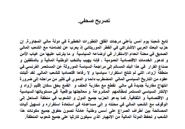 حزب البعث العربي الاشتراكيامة عربية واحدة ذات رسالة خالدة .قيادة قطر موريتانيا بيـــان بمناسبة الذكـــرى 79 لميلاد البعث . ايها